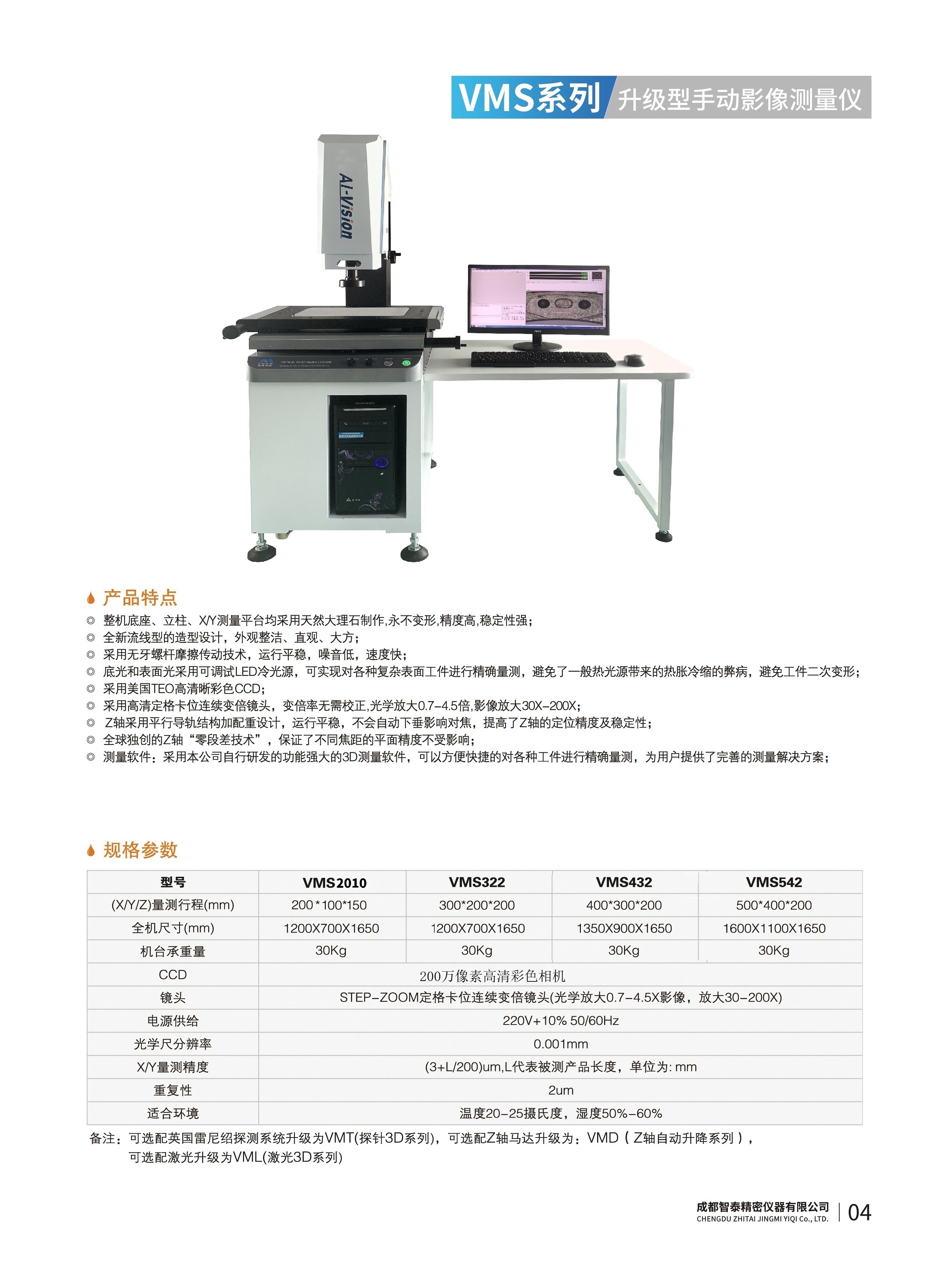 成都智泰精密儀器有限公司專注于精密測(cè)量儀器,人工智能,智能制造領(lǐng)域,專業(yè)從事智能視覺自動(dòng)化檢測(cè)解決方案的貿(mào)易型企業(yè)。公司成立于2011年,位于天府之國成都,現(xiàn)有行業(yè)精英十余人,辦公倉儲(chǔ)面積200余平米。 公司主要產(chǎn)品為精密光學(xué)影像測(cè)量儀,精密輪廓形狀測(cè)量儀,精密機(jī)器人定位系統(tǒng),精密智能視覺尺寸檢測(cè)儀器,精密表面缺陷智能檢測(cè)設(shè)備,工業(yè)工程特種機(jī)器人。 公司憑借過硬的技術(shù)實(shí)力和產(chǎn)品方案,率先進(jìn)入智能視覺自動(dòng)化檢測(cè)領(lǐng)域,推廣以精密智能視覺自動(dòng)化檢測(cè)為基礎(chǔ)的機(jī)器人自動(dòng)化應(yīng)用,公司不斷整合上下游的資源,擁有巨大的全產(chǎn)業(yè)鏈優(yōu)勢(shì)??蛻羧后w覆蓋了我國精密制造業(yè)的多數(shù)領(lǐng)域,包括航空、航天、軍工、汽車、新能源、光伏、食品,精密電子、精密機(jī)械、模具、PCB、LCD、五金、塑膠、醫(yī)療、教育、計(jì)量及科研院所等行業(yè)。 公司創(chuàng)新的產(chǎn)品能滿足生產(chǎn)與制造行業(yè)客戶的要求,訓(xùn)練有素的工程師能及時(shí)提供多種技術(shù)服務(wù),如解...